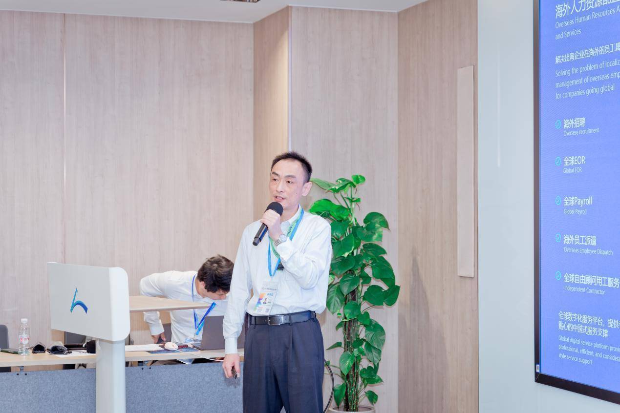 在对接洽谈活动上,今元集团旗下金柚GEO服务高级总监唐佳文聚焦企业出海的痛点与难点,向在场来宾展示了今元集团的全球服务解决方案,分享成功实践案例,为已有海外发展和计划海外发展的企业提供全面的用工方案参考,助力企业走稳“出海路”。